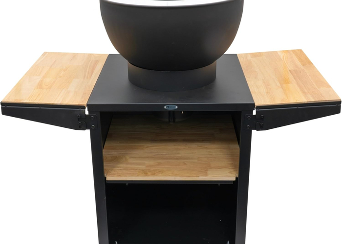 Уличная кухня Kjok состоит из жаровни, двух отделений для хранения и двух боковых полок по 30 см каждая. Боковые полки можно использовать для нарезки овощей или сервировки блюд. А если в них нет необходимости, их можно легко сложить.